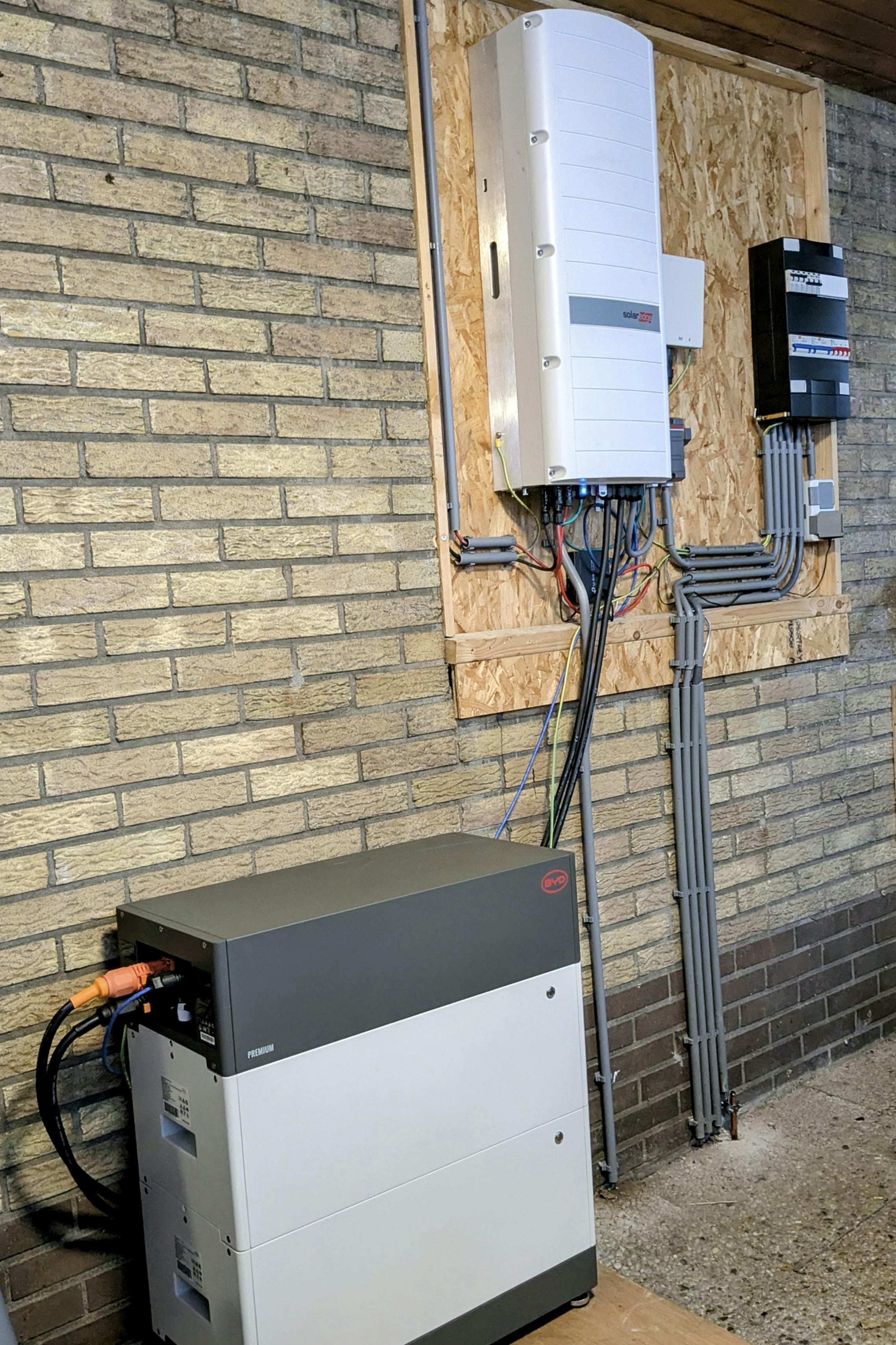 Omdat de oorspronkelijke meterkast inmiddels te klein werd, plaatste hij een tweede kast en verbond deze via een stevige kabel met de bestaande installatie. Hierop sloot hij onder andere de laadpaal en warmtepompen aan.