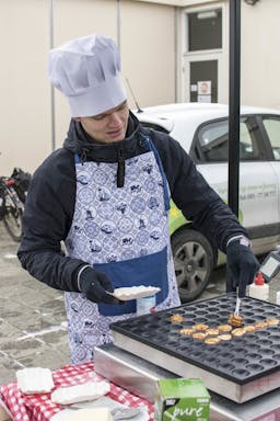 Buiten deelden we gratis poffertjes uit aan buurtbewoners. Kortom: een geslaagde avond!